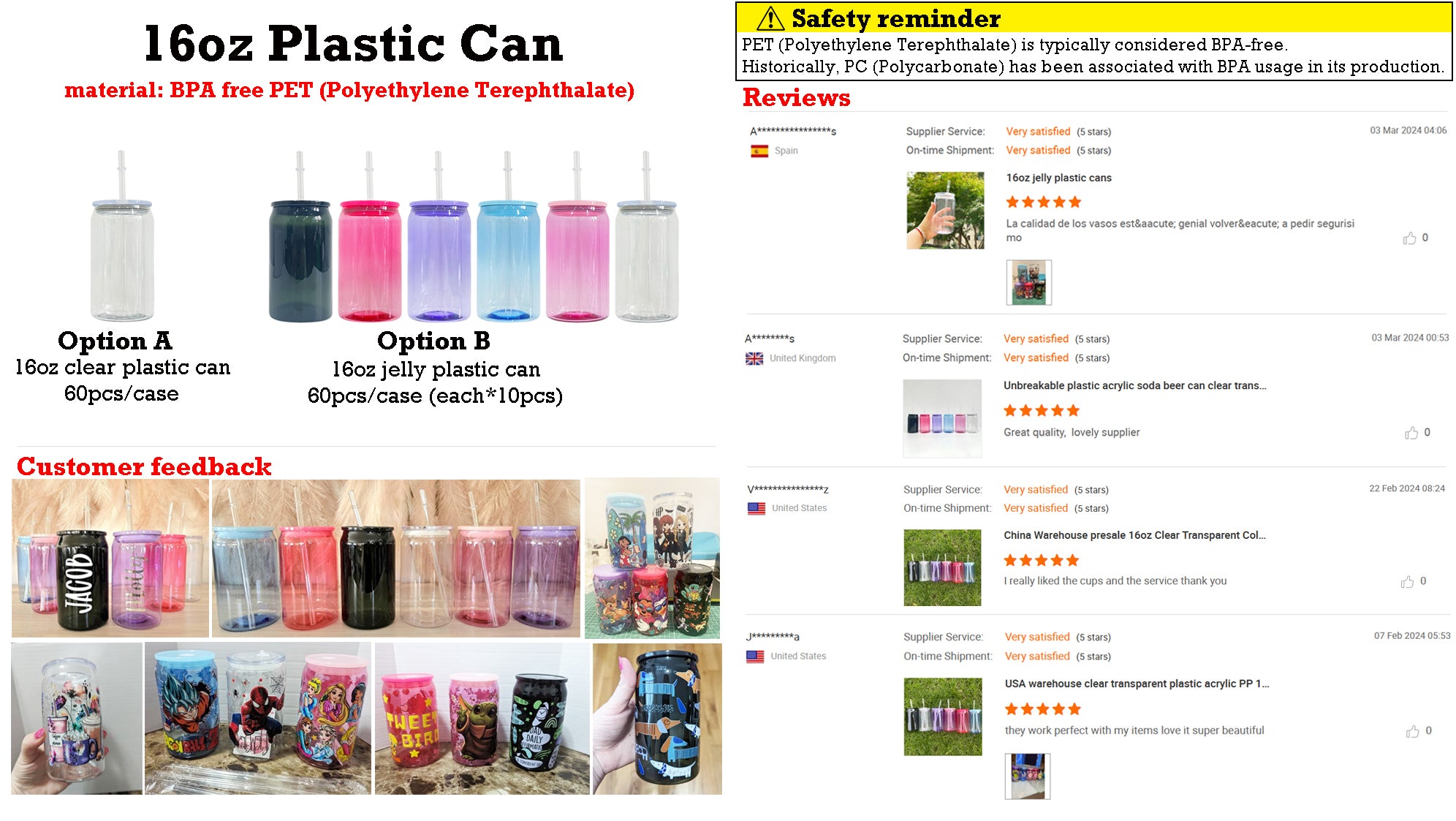 Rts usa_16oz 20oz BPA free unbreakable clear transparent colored jelly PET plastic can soda beer cans for UV DTF wraps_nina